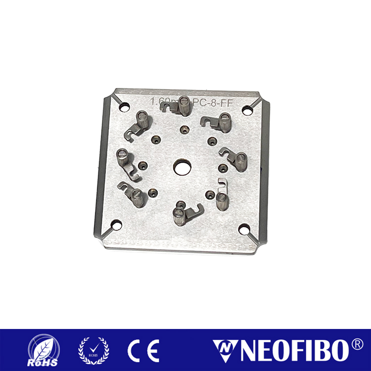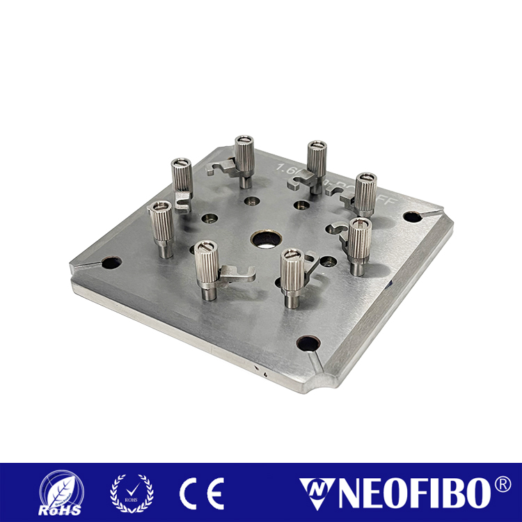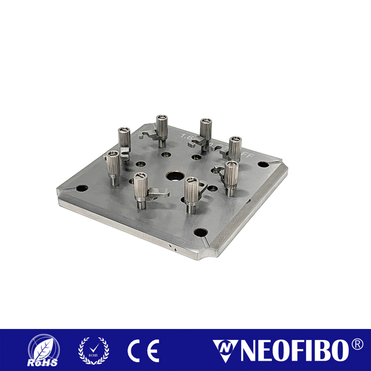 Shenzhen NEOFIBO Technology Limited’s independently developed 1.60mm ferrule field fiber polishing fixture is specifically designed for high-precision polishing operations on 1.60mm diameter ferrule. Featuring a hook-type locking mechanism, this fixture enables one-second core clamping and one-second removal for convenient and efficient operation. It supports simultaneous clamping of 8 ferrules, with each station equipped with independent pressure adjustment to ensure uniform force distribution during polishing, delivering outstanding end-face polishing results. Additionally, the fixture can be customized to accommodate different ferrule diameters, adapting to diverse application scenarios.