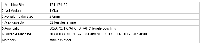 2.Applicate to SC/APC, FC/APC, ST/APC ferrule polishing