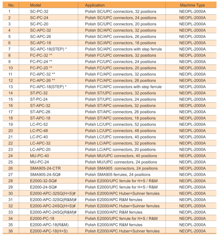 Neofibo focuses on the field of fiber optic polishing solutions. We specialize in manufacturing fiber optic polishing machines, designing polishing fixtures for various optical fiber connectors, and offering complete polishing processes and materials for all types of fiber optic connectors.