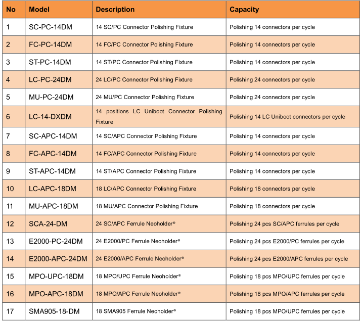 | 5.Suitable Machine | Domaille HDC-5200 & Neofibo FPM-5000 MPO Programmable Polishing Machine |
